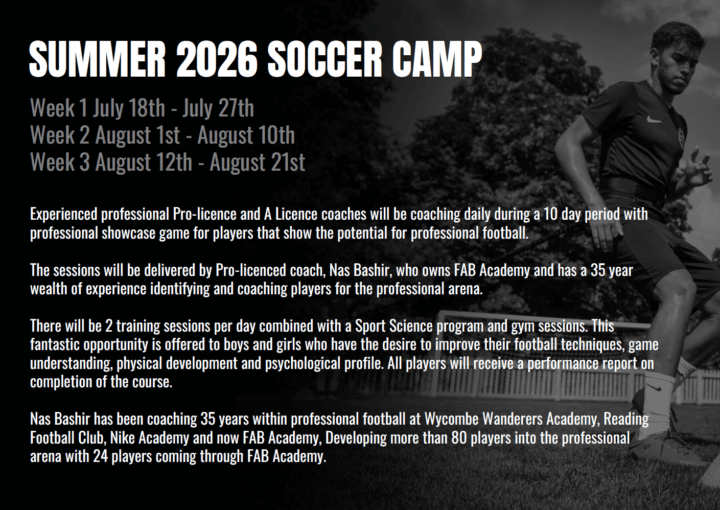 2026年7月と8月にイングランドのプロ育成サッカーアカデミーがサマーキャンプを行います。